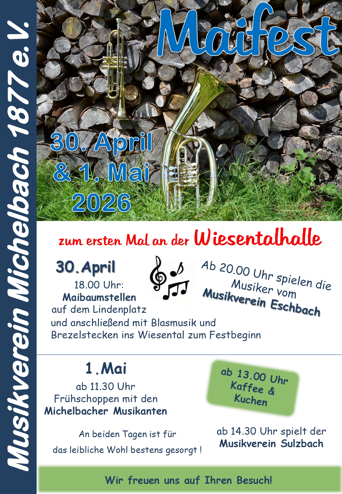 Am 01. Mai 2026 ab 11.30 Uhr Frühschoppen mit den Michelbacher Musikanten.
